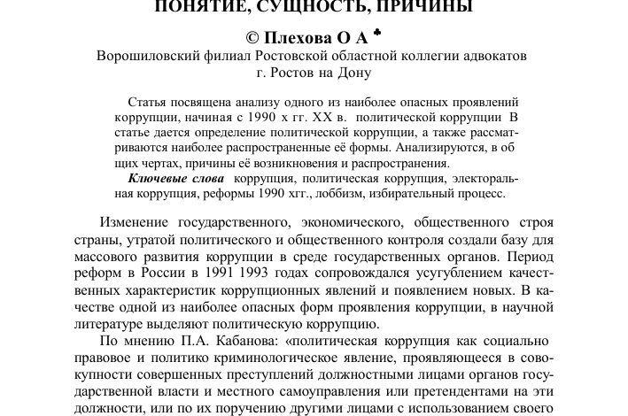 Коррупция — это злоупотребление должностным положением в личных интересах. В российской политике коррупция является серьезной проблемой, которая охватывает различные сферы общественной жизни, включая законодательную, исполнительную и судебную власть. Коррупция может проявляться в виде взяточничества, мошенничества, лжи, сговоров и других противоправных действий.